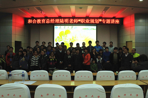 11月24日晚,由南华大学共青团委员会主办,南华大学KAB创业俱乐部承办的职业规划讲座在图书馆学术报告厅成功举行。莅临此次讲座的嘉宾有:和合教育董事长兼监事赵虹、国际业务总监唐晓红、北美项目经理陈雨声、亚洲项目经理丘礼嘉、业务经理梁辉与KAB创业指导老师、经济管理学院刘萌芽副院长以及各团学会负责人。