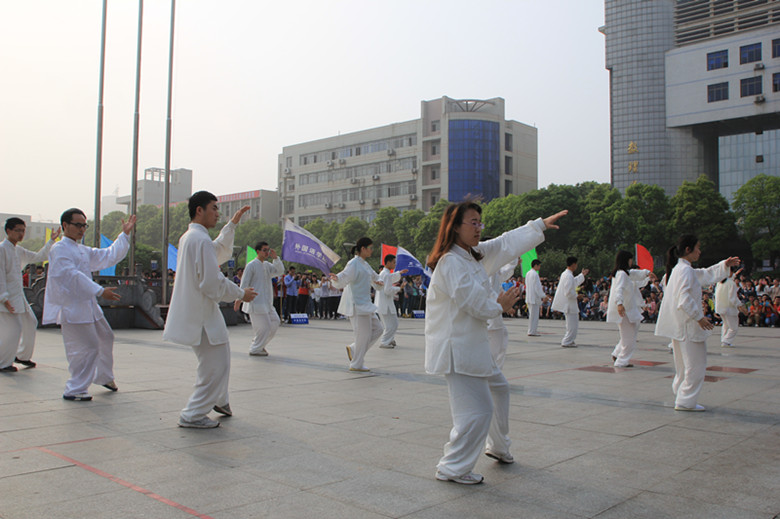 2014年4月12日,南华大学大学生们在校园开展太极拳、健美操、环校跑等大学生群众性课外体育锻炼活动。 当日,南华大学“走下网络、走出宿舍、走向操场”活动在南华大学广场举行启动仪式。学校希望通过活动的开展,引导大学生开展积极向上的群众性课外体育锻炼活动,增强大学生体质、促进大学生健康成长。大学生“走下网络、走出宿舍、走向操场”主题群众性课外体育锻炼活动,是由团中央、教育部、国家体育总局、全国学在今年面向高校大学生发起的旨在“强化体育课和课外锻炼,促进青少年身心健康、体魄强健”的一项活动。