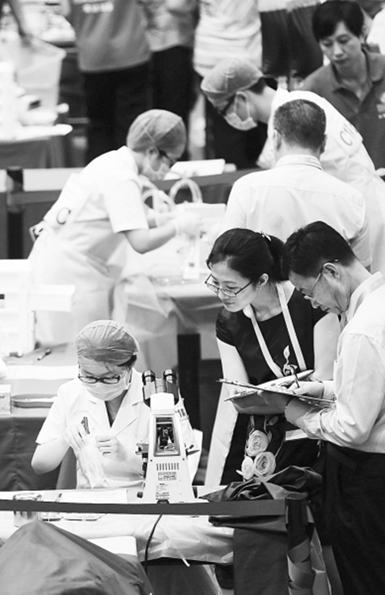 全国高等医学院校大学生临床技能竞赛,是目前国内规模最大、层次最高,影响最广的医学教育领域的全国性竞赛,本届竞赛设置了东北、华北、华东、华中、华南、西南西北等6个分区赛和全国总决赛,共有115所举办临床医学专业本科教育的高校参加,覆盖了全国设置本科临床医学专业普通高校的近90%,其中41所高校的选手通过分区赛进入总决赛。为确保比赛水平和公正,大赛组织了140多位高水平的裁判员,并特邀了9位全国著名的医学专家担任大赛督查。