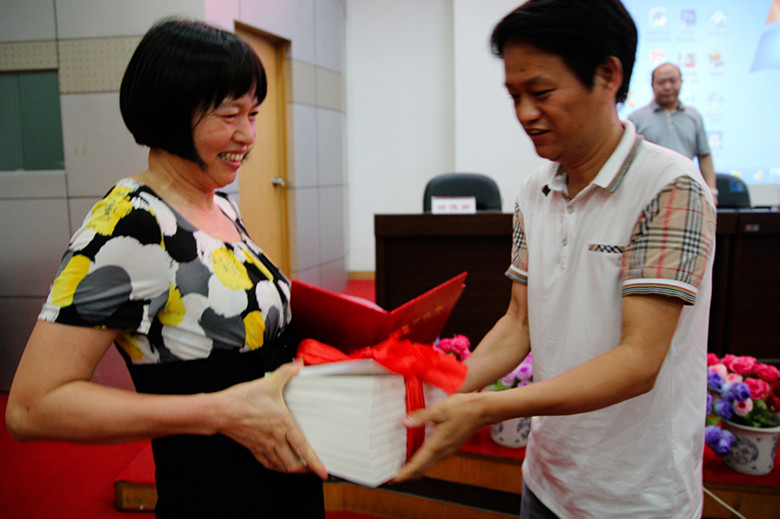 在报告会开始之前,进行了两项仪式。首先,由图书馆党总支书记张艳红老师接受徐德新校友向学校图书馆捐赠的30册作品和一幅字画。然后,由刘升学副校长代表文校长颁发聘请徐德新校友为文法学院客座教授的证书。