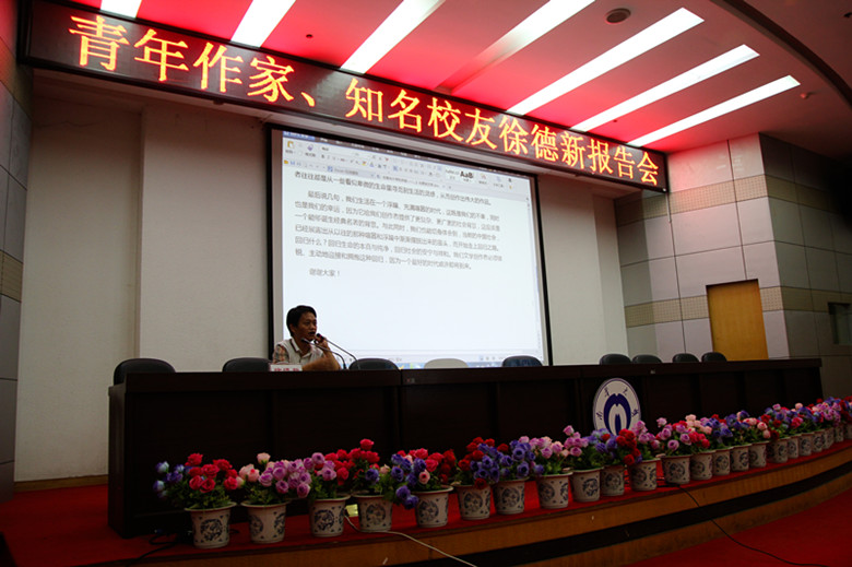 徐德新校友作了一次精彩的报告,促进了校园的文化建设、发展了文学艺术、增加了同学们对文学的理解和热爱。