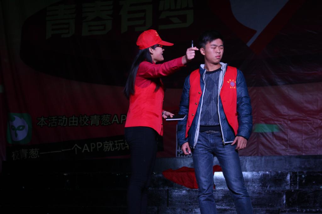 活动当天上午,南华大学红湘校区南华广场上聚集了来自全校18个学院的志愿者分队与青志特色分队的活动点,摆点前面人来人往,你画我猜小游戏,自制寿司试吃…各式特色活动令人目不暇接,游戏参与者还有机会得到小礼品,虽不贵重,但都代表了志愿者们的拳拳之心。当天上午阴雨连绵,即使这样也浇不灭志愿者心中如火的热情。庆祝晚会晚7:30于南校大礼堂举行,古色古香的器乐合奏、颇具民族特色的舞蹈串烧、激情四射的歌曲演唱、生动新颖的手语舞、以志愿者为题材的小品等,令人耳目一新,大礼堂中掌声不断。晚会中穿插播放着青志往届成员录制的视频,讲述他们在青志的点滴故事和心得体会,许多志愿者观众潸然泪下。
