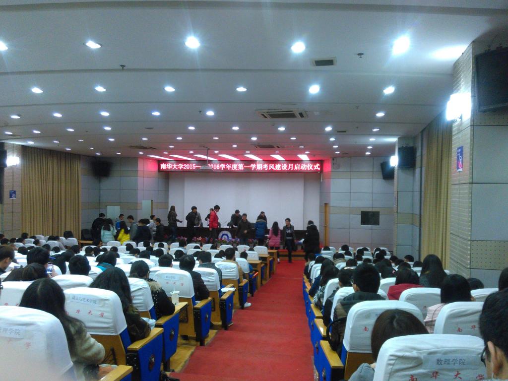2016年1月11日19:30,为端正考风、严肃考纪、加强诚信教育、保证考试质量,南华大学2015—2016学年度第一学期考风建设月启动仪式在本部图书馆学术报告厅举行。教务处副处长廖基定、学工部副部长廖迎春、校团委副书记刘文君、校团委副书记李海洋以及各学院学生代表出席了本次会议。本次会议由校团委副书记刘文君主持。