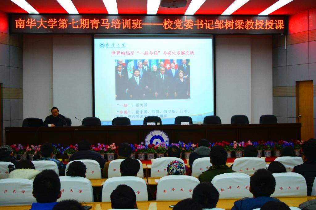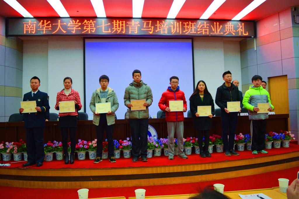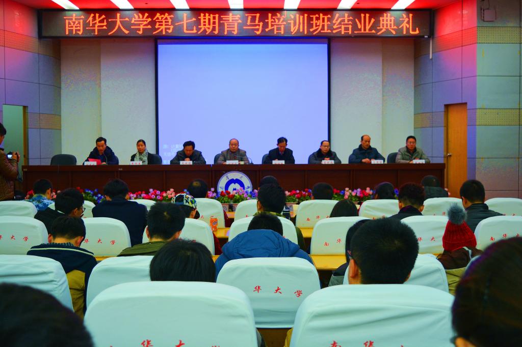 2016年1月12日我校于红湘校区图书馆一楼报告厅隆重举行了南华大学第七期青年马克思主义培训班第二次授课暨结业典礼。党委书记邹树梁、副校长刘升学、党委组织部部长刘镇江、党委宣传部常务副部长彭建军、党校常务副校长简世德、学工部副部长廖迎春、保卫处副处长宁曼荣、马克思主义学院院长肖宗志、团委副书记刘文君、团委副书记李海洋以及各学院团委书记等出席典礼。