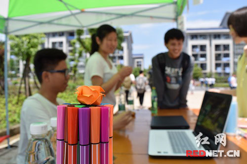 “为地球多一块绿色是我们的责任!”“我要变废为宝,为环保代言!”活动现场人声鼎沸,十分热闹,学生们积极性很高,不少人利用废弃复印纸及彩色便笺纸,折叠成各种精美的手工艺作品,只要将自己的折纸作品粘贴在展板上,便可获得一张精美贺卡。更有工作人员为大家提供电脑义诊,免费安装系统、软件,并教授电脑清灰的技巧,提醒同学们注意电脑病毒的入侵。最后,参与活动的同学们共同在保护地球的横幅上签名,让环保的意识深入内心。