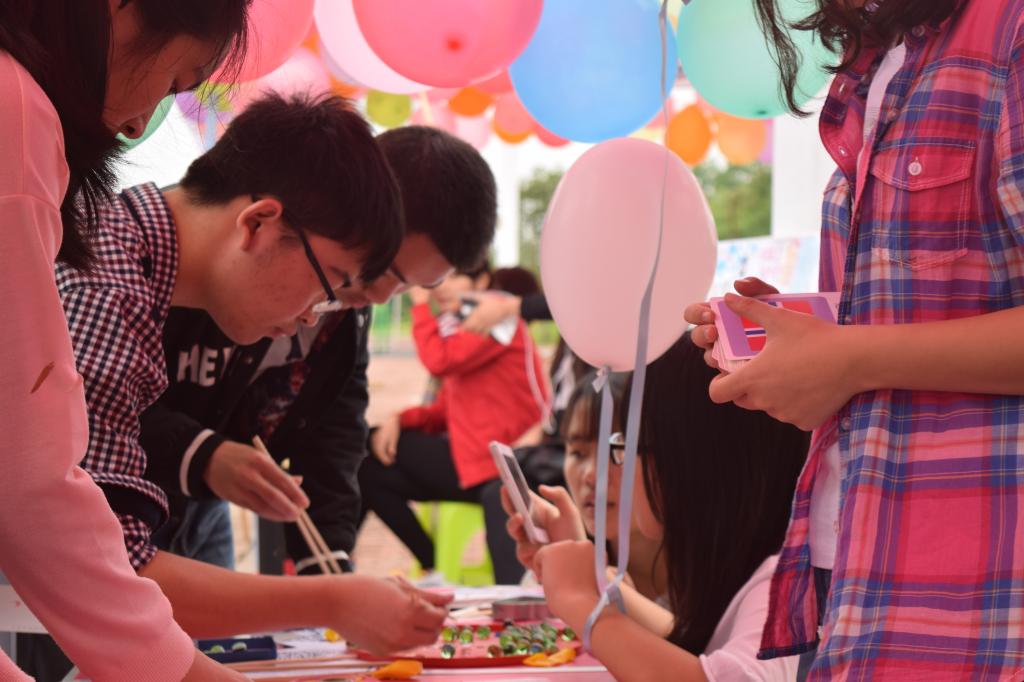 当天上午,活动在两大校区有序进行着,“相扶相持”“此时无声胜有声”等活动场地不时传来欢笑声。“我最喜欢的就是‘你说我猜’这个活动了。通过这个活动我才发现原来我身边有这么多逗比,‘憨笑’‘傻笑’‘疯笑’被队友表现得淋漓尽致,逗死宝宝了。又有新的表情包了。”大二学生姚思雨笑道。