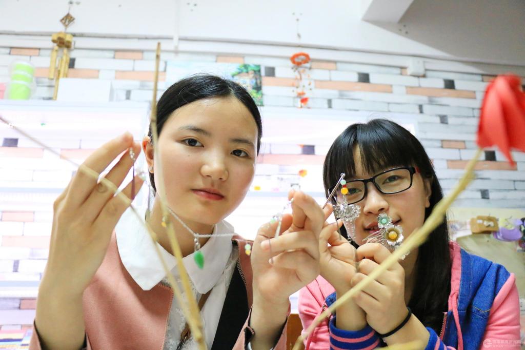 民俗手工坊里,除了古装以外,最吸引人的是民间手工艺品,发簪,头钗,项链等颇具古风的手工艺品。虽然看上去像是旅游景点的纪念品,而实际这些手工艺品,都出自学生自己之手,据叶俊雄言道店里的手工艺品,一些是同班女生制作的,一些是学妹制作的,他将它们拿到店里卖出,一起创业。这些自制的手工艺品,也很受到学校里不少女神的青睐。除了,创业的学生自制以外,手工坊还提供材料,指导前来购买的人自己动手制作。当日,还有男生前来在指导下自己动手制作了发簪,打算作为520的礼物。