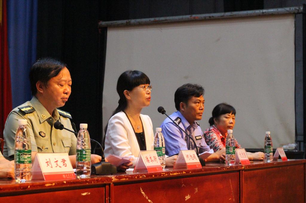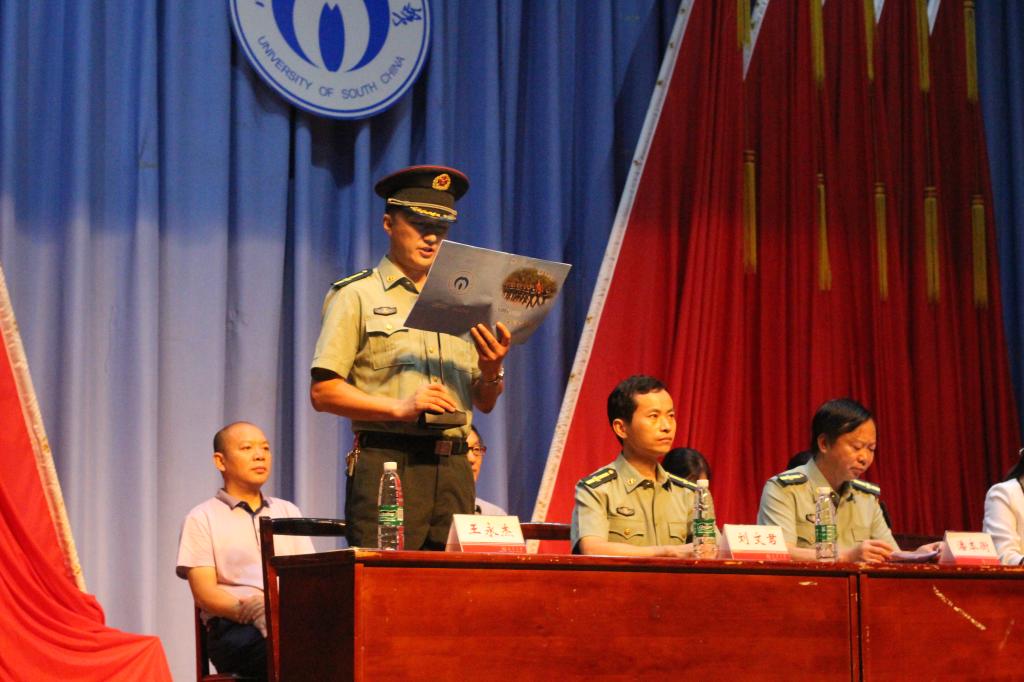 此次大会与会领导有南华大学副校长何旭娟,学工部/武装部部长、军训师师长潘本衡,团委书记、军训师政委刘文君,保卫处处长、军训师政治部主任龙志坚,学工部/武装部副部长、军训师参谋长王永杰,军训师一团团长兼政委黄建美,以及红湘校区参训学院领导。