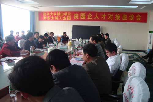 3月14日下午,考察团和大浦工业园的老总们集聚在创大冶金集团会议室,开展了一场以“务实并有成效”为主题的“南华大学船山学院、衡东大浦工业园——院园企人才对接座谈会,会议由吴刚主任主持。首先,吴主任介绍了大浦工业园的现状、发展规划,并表示诚挚欢迎船山学院的老师和同学们来工业园考察和指导。紧接着,船山学院院长陈熙讲话,就学院基本情况、人才培养模式和学生综合素质等作了简述,也邀请各企业来学院选拔优秀人才。接下来,同学代表发表了感言。最后同学们纷纷向在座的企业老总提问,同学们关注更多的是企业的办企理念、对人才的需求和对员工的培训机制。