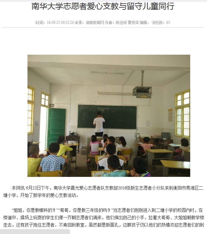 【湖南教育网】南华大学志愿者爱心支教与留守儿童同行