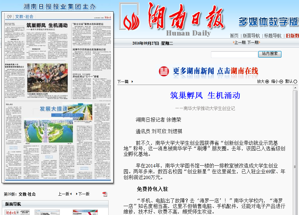 前不久,南华大学大学生创业园获得省“创新创业带动就业示范基地”称号,这一消息被南华学子“刷爆”朋友圈。去年,该园已入选省级创业孵化基地。