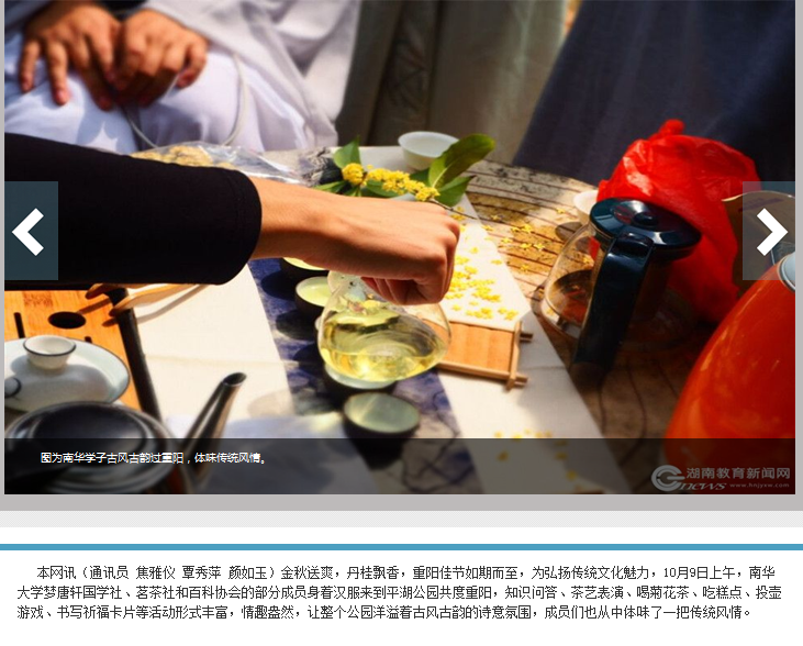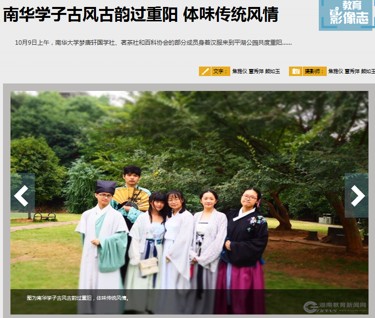 上一条:【红网】南华学子古风古韵过重阳 体味传统风情 下一条:【湖南教育新闻网】湖南省“笑满三湘”文艺晚会在南华大学举行