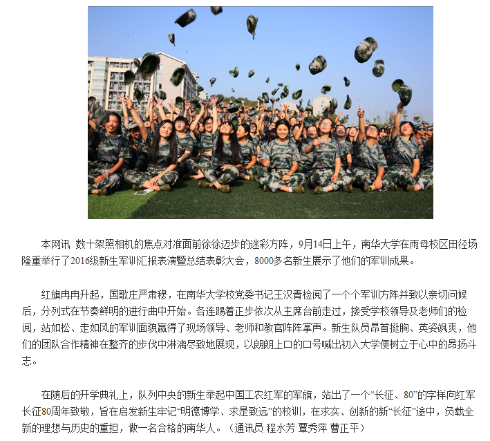 上一条:【湖南教育网】南华大学志愿者爱心支教与留守儿童同行 下一条:【湖南教育网】南华军训摄影展秀出镜头中的“真正男子汉