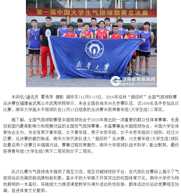 上一条:【红网】国际大学生节 南华大学学子“放飞”千纸鹤 下一条:【湖南教育网】南华大学获湖南省高校企业案例大赛一等奖