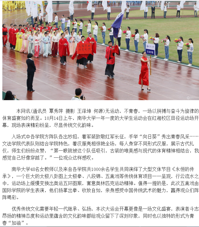 上一条:【湖南教育网】南华大学运动会开幕炫汉服 下一条:【湖南教育新闻网】吉他谱出“蓝瘦,香菇” 大学社团第一课有创意
