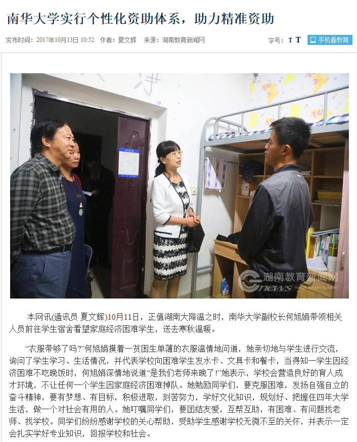 上一条:【湖南教育新闻网】南华大学推行个性化资助体系 下一条:【湖南教育新闻网】南华大学实行个性化资助体系,助力精准资助
