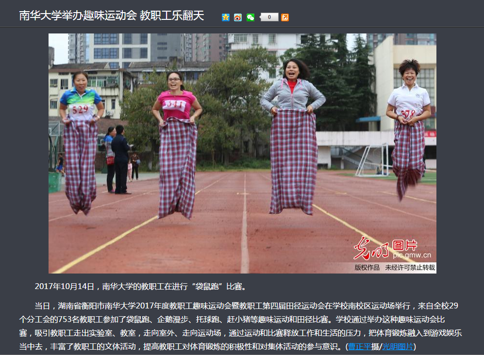 上一条:【新湖南】衡阳:大学生歌舞快闪迎十九大 下一条:【湖南教育新闻网】南华大学举办教职工趣味运动会