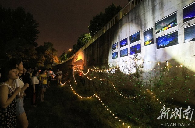 6月3日,南华大学校园篮球场,大学生在夜色中观看星空摄影展。“世界环境日”前夕,该校大学生摄影爱好者开展“星空”摄影展,让同学们近距离接触“光绘”等形式,倡导关爱地球环境,践行绿色生活,建设美丽中国。 陈涛 王泽坤 阳铭君 刘益闻 摄影报道