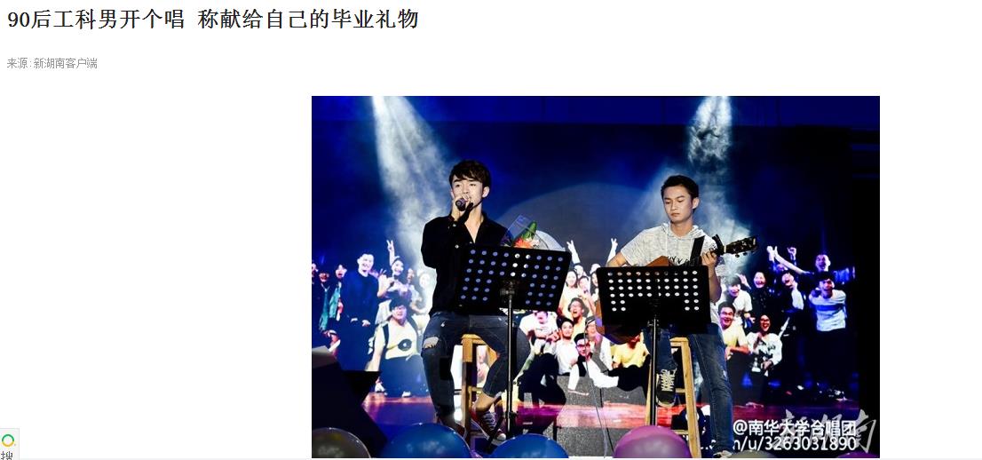 又到毕业季,如果你还停留在拍毕业照、聚餐、通宵K歌、毕业旅行等庆祝模式,那你就out了。近日,南华大学一名非专业的90后工科男办了一场毕业个人演唱会,让原本带着一丝感伤的毕业氛围一时间变得躁动起来。