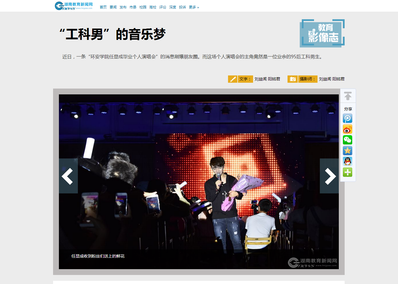 本网讯(通讯员 刘益闻 阳铭君)“你拿到演唱会的门票了吗?” 近日,一条“环安学院任显成毕业个人演唱会”的消息刷爆朋友圈。而这场个人演唱会的主角竟然是一位业余的95后工科男生。