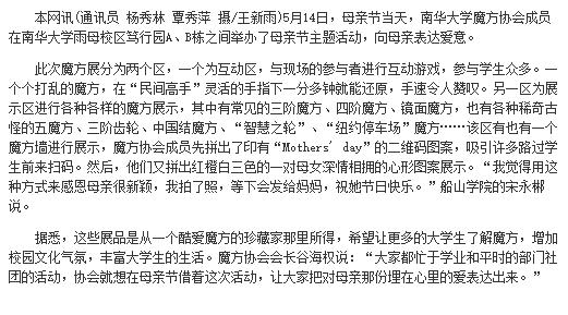 上一条:【新湖南】衡阳青年志愿者开展关爱老人活动 下一条:【湖南教育新闻网】校园“好声音”,南华学子唱响音乐梦想