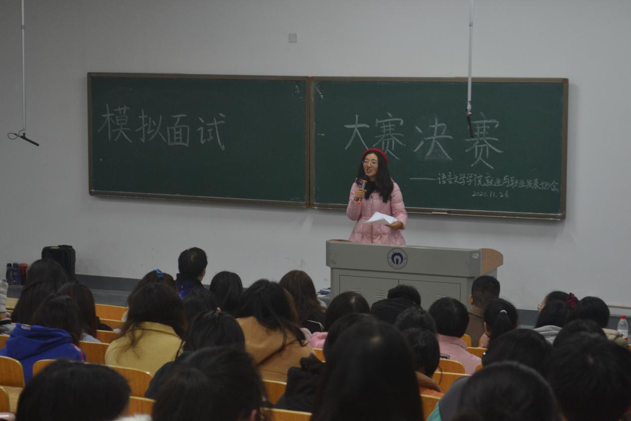 为提高我院学子在未来求职道路上的竞争力,11月26日晚,语言文学学院就业与职业发展协会主办的模拟面试大赛决赛于雨母楼101教室顺利举行。语言文学院学工室主任肖勇、团委书记刘爱玲、20级辅导员杜百知和就业与职业发展协会校总会会长纵瑞达担任本次比赛的面试官。